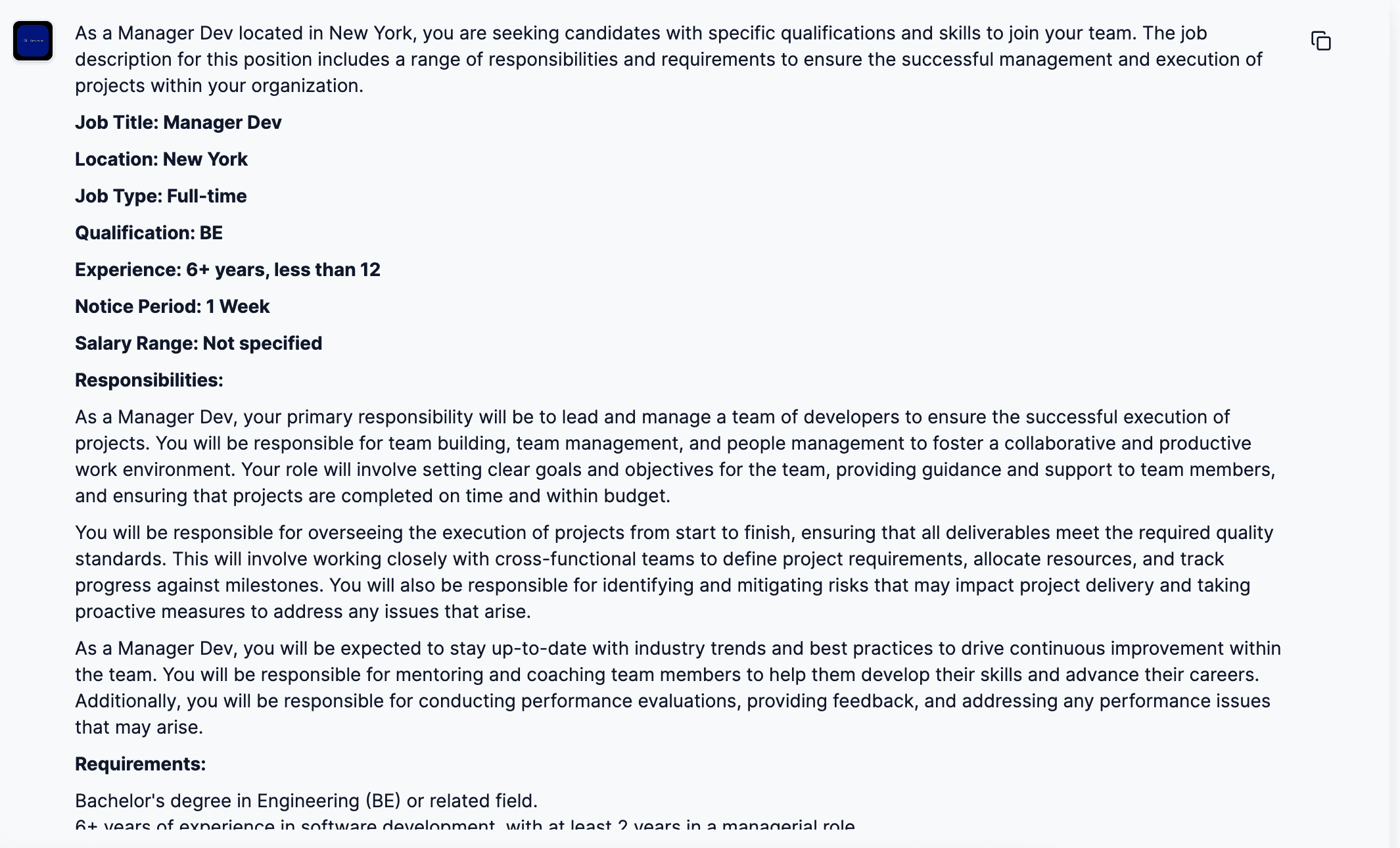 Not sure how to craft the perfect job description to attract the best talent? We've got you covered. Use your AI assistant to generate a tailor-made JD for yourself.
